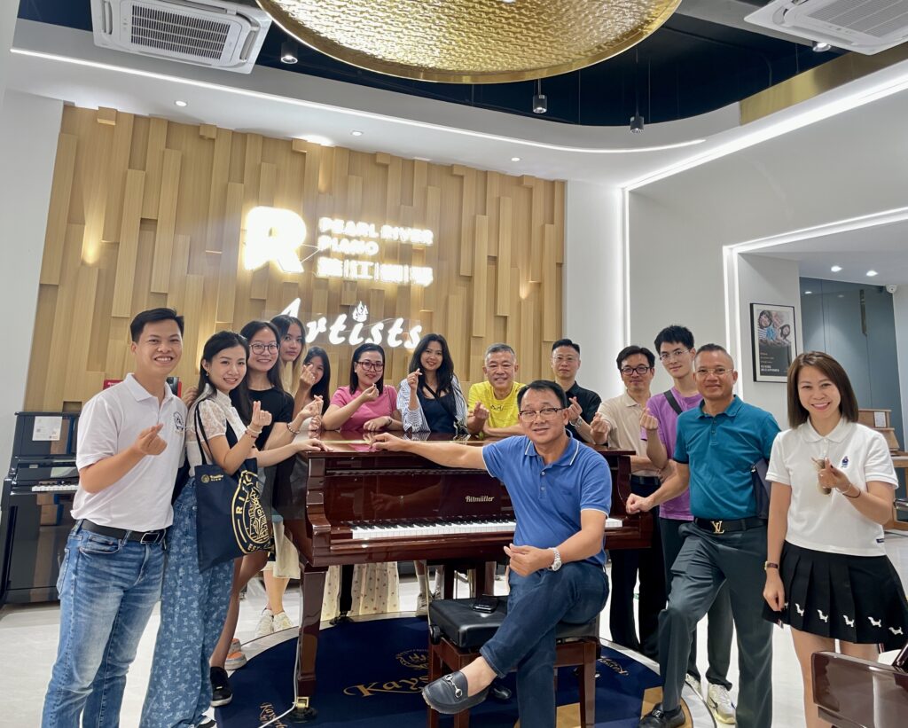 Đoàn Việt Nam đã xem video giới thiệu bằng tiếng Anh về Pearl River Piano và tìm hiểu về các hoạt động đẩy mạnh thương hiệu gần đây do công ty tổ chức